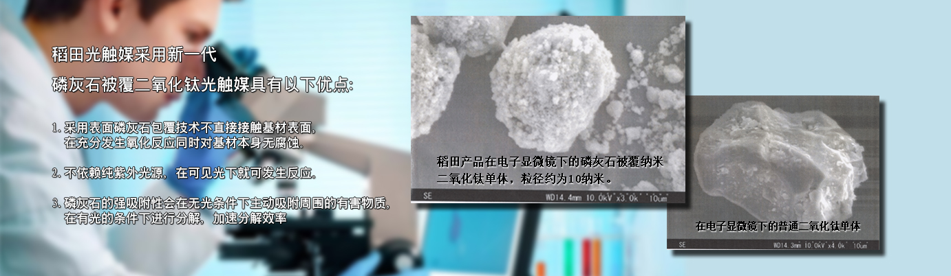在認識【光觸媒】之前,要先了解什么是【觸媒】。觸媒是日語,翻譯成中文叫催化劑。催化劑是能在化學反應中加速反應速率,而本身在反應前后并不發(fā)生變化的物質。光觸媒是一種以納米級二氧化鈦為代表的具有光催化功能的光半導體材料的總稱。它涂布于基材表面,在光線的作用下,產生強烈催化降解功能:能有效地降解空氣中有毒有害氣體;能有效殺滅多種細菌,并能將細菌或真菌釋放出的毒素分解及無害化處理;同時還具備除臭、抗污、凈化空氣等功能。 稻田光觸媒采用【磷灰石被覆納米二氧化鈦分子結構】,具有吸附、分解、去除、無毒化的特質。表面磷灰石包覆技術不直接接觸基材表面,在充分發(fā)生氧化反應的同時對基材本身無腐蝕。其中的【磷灰石】成分,具有強大的吸附能力,可以隨時吸附空氣中的異味源、細菌、病毒等有害物質,再交由【二氧化鈦】在光源下進行分解反應,因此能夠24小時吸附、分解